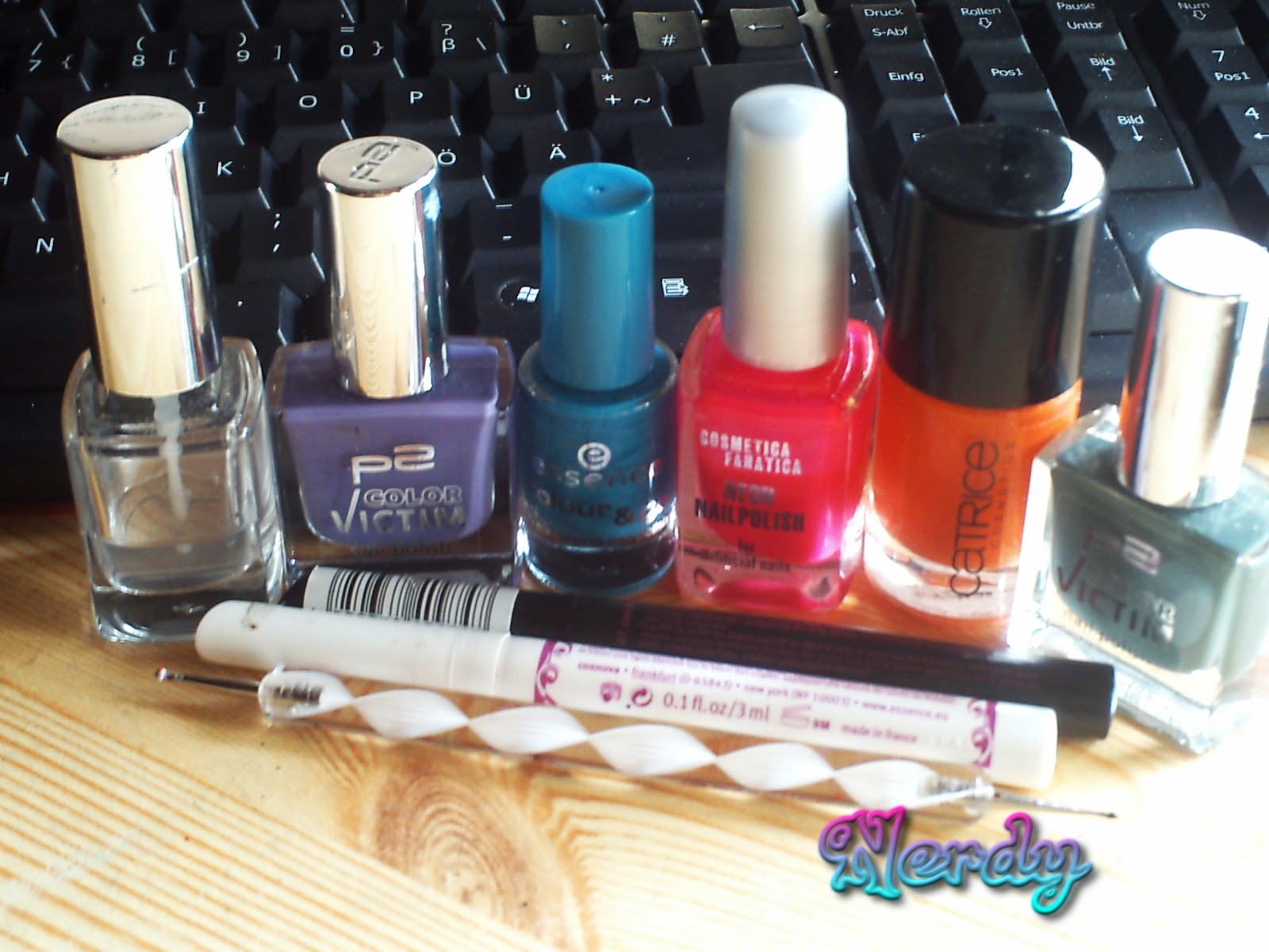 Essence Colour & Go 55 lets get lost, Cosmetica Fanatica Nr. 101, Catrice 020 Man, GO Tango und dem P2 Colour Victim 601 good luck! zu lackieren.Als die Farben getrocknet waren, habe ich die Farbe aus dem Essence Nail Art Pen 02 cool black auf ein blatt gedrückt und mit dem Dotting Tool den Rahmen des Bildschirms und die Knöpfe des GameBoys aufgemalt.